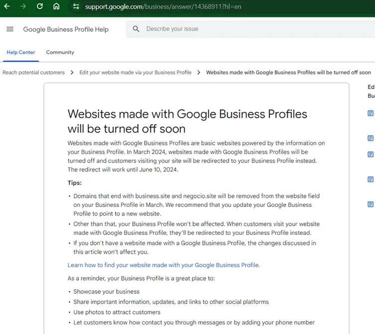 Rest assured, your Business Profile won't be affected in any other way. When customers visit your old Google Business Profile website, they'll seamlessly redirect to your Business Profile.